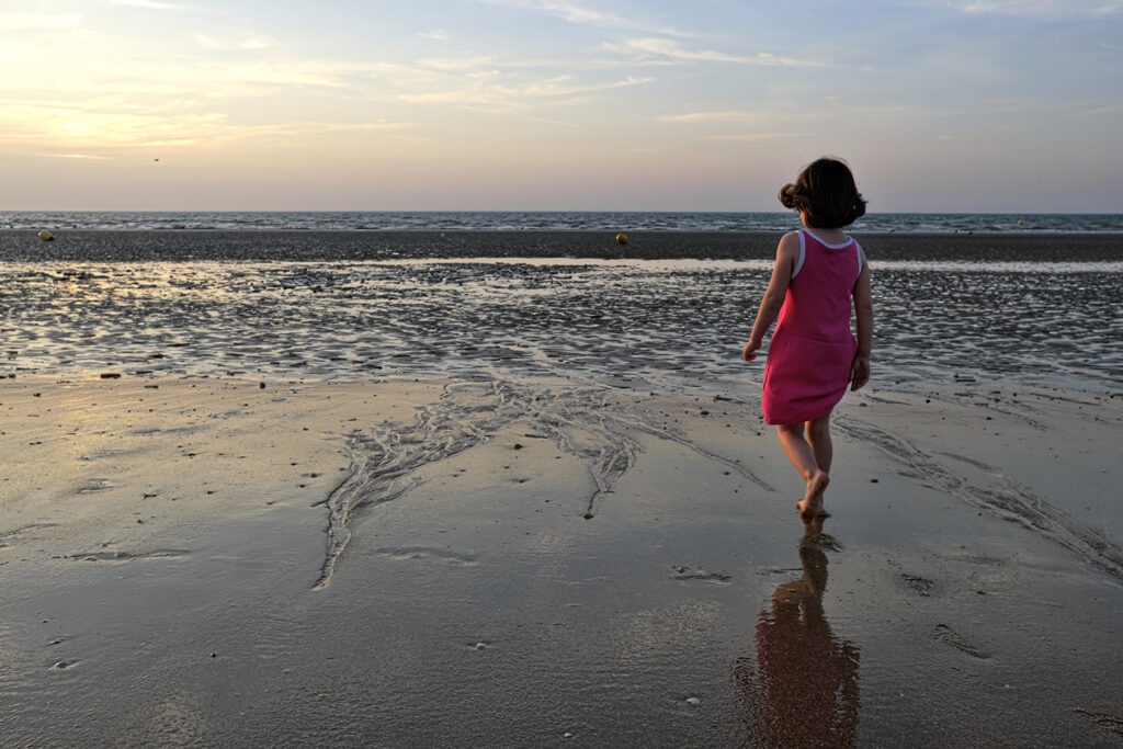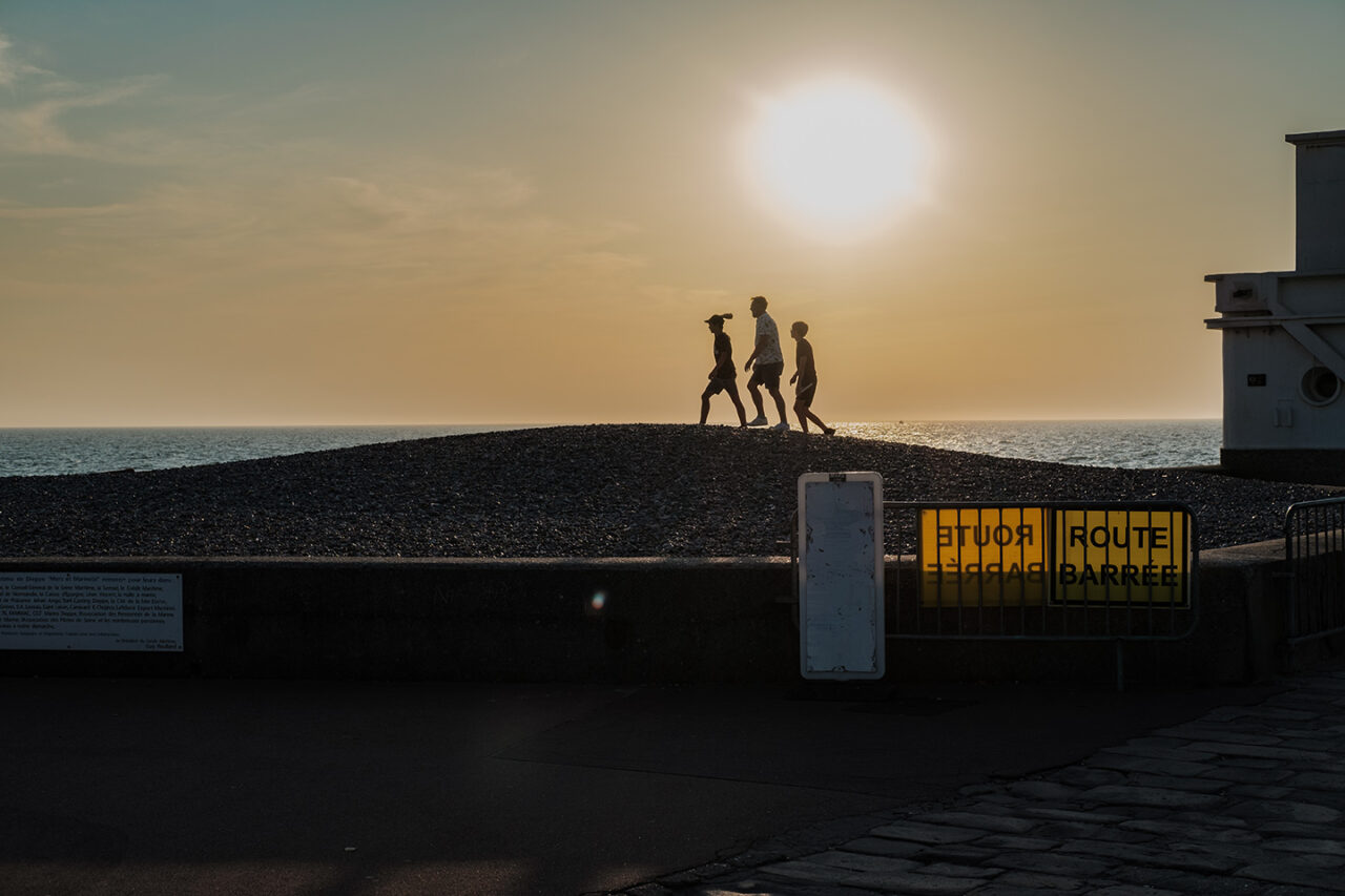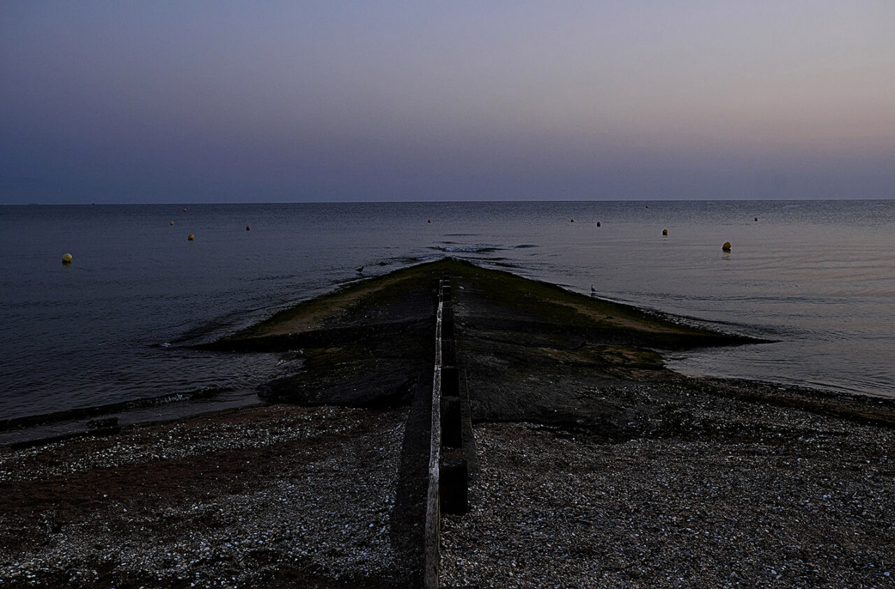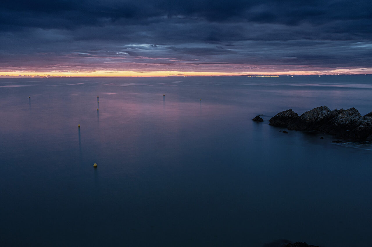 Sortir avant l’aube, avant la première lumière, sortir silencieux comme un chat – quand la nuit et le silence règnent encore et que toute l’humanité environnante reste endormie- constitue un moment privilégié, une expérience irremplaçable. Ces quelques instants comme en attente, ce temps où la lumière revient, lente et inexorable, ce temps où le jour renaît sublime mon rapport au monde. Ici, avec les mouettes et les pluviers que je dérange, je suis le seul vivant et sur la plage, la promenade ou la falaise, le spectacle qui va commencer nous est réservé . Les premières silhouettes n’apparaîtront, lentes et furtives, que deux ou trois heures plus tard. Ces quelques heures me sont précieuses, suspendues, étrangères au cours ordinaire du temps. Je savoure ces délices, je les fixe calmement.