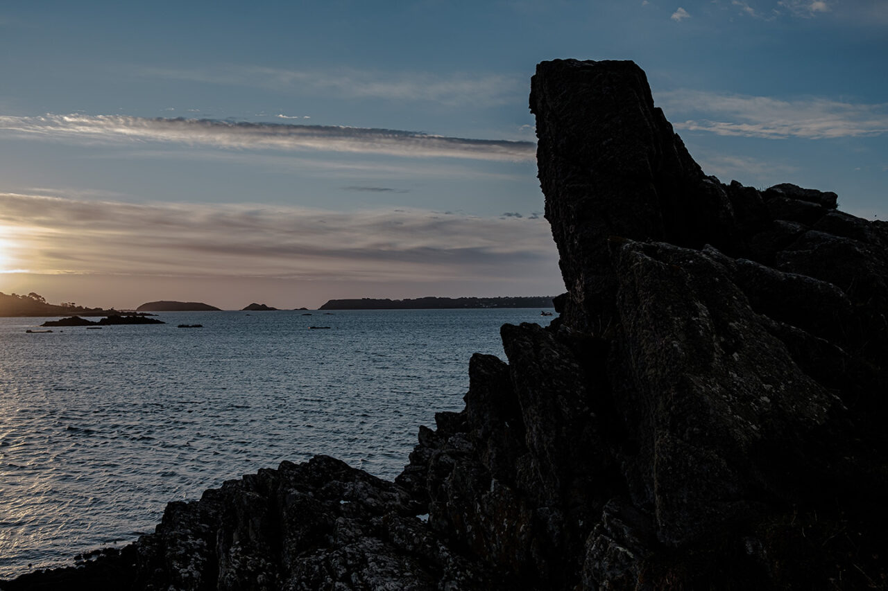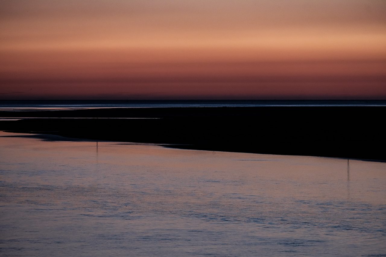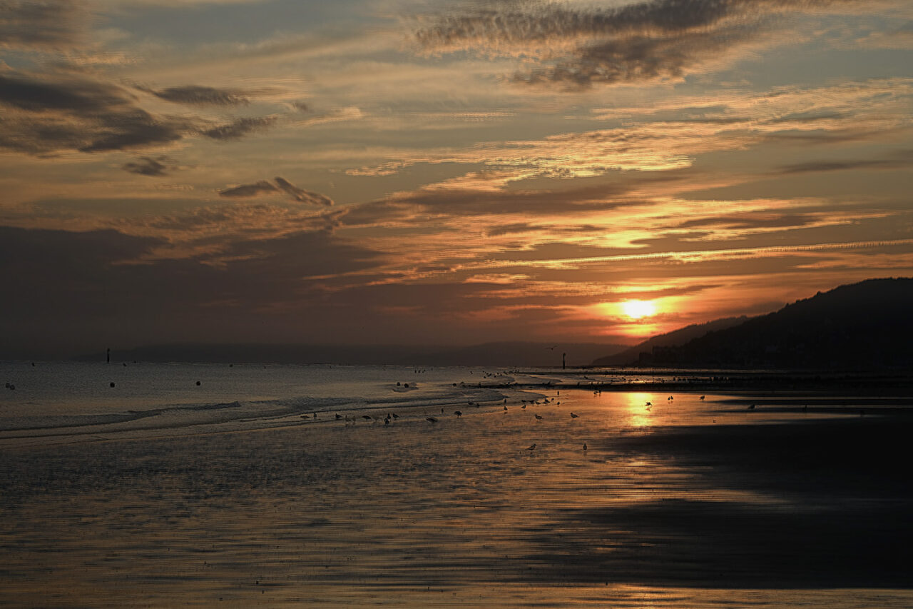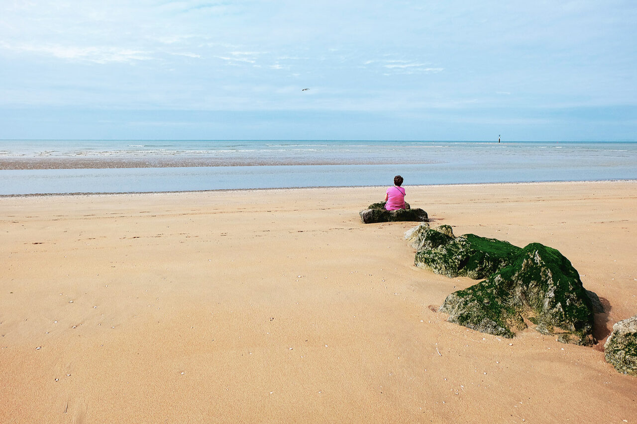 Sortir avant l’aube, avant la première lumière, sortir silencieux comme un chat – quand la nuit et le silence règnent encore et que toute l’humanité environnante reste endormie- constitue un moment privilégié, une expérience irremplaçable. Ces quelques instants comme en attente, ce temps où la lumière revient, lente et inexorable, ce temps où le jour renaît sublime mon rapport au monde. Ici, avec les mouettes et les pluviers que je dérange, je suis le seul vivant et sur la plage, la promenade ou la falaise, le spectacle qui va commencer nous est réservé . Les premières silhouettes n’apparaîtront, lentes et furtives, que deux ou trois heures plus tard. Ces quelques heures me sont précieuses, suspendues, étrangères au cours ordinaire du temps. Je savoure ces délices, je les fixe calmement.