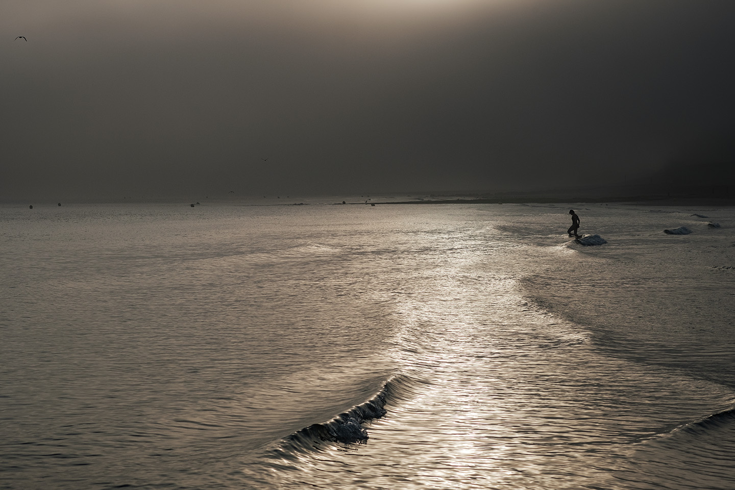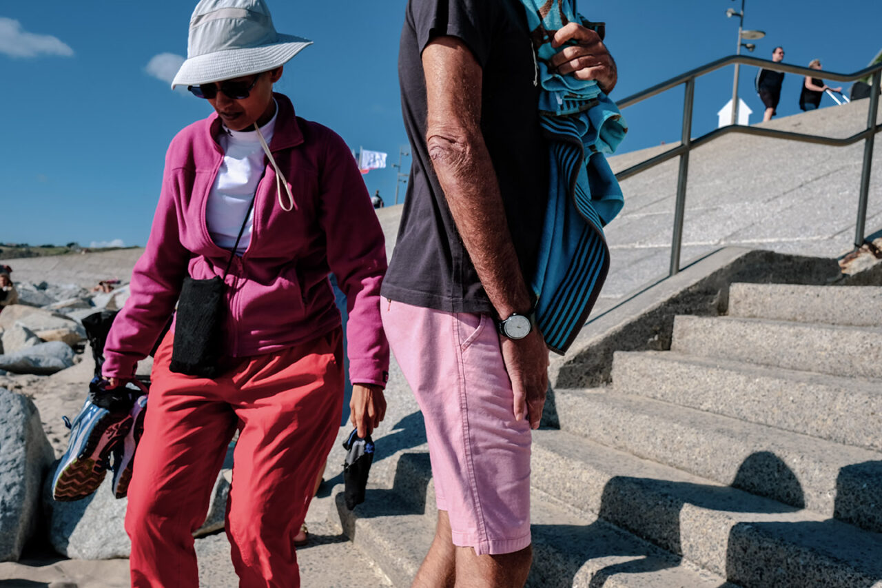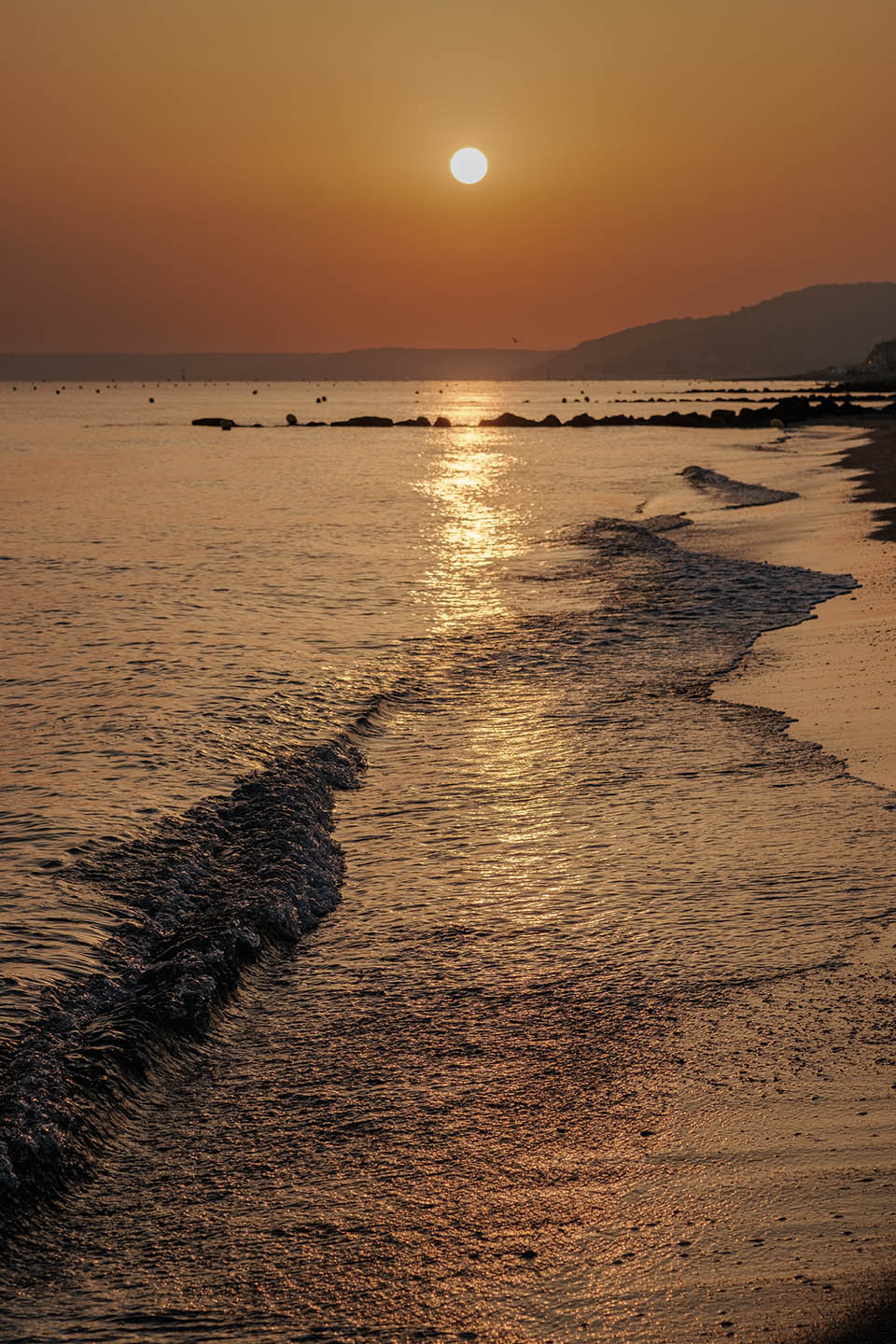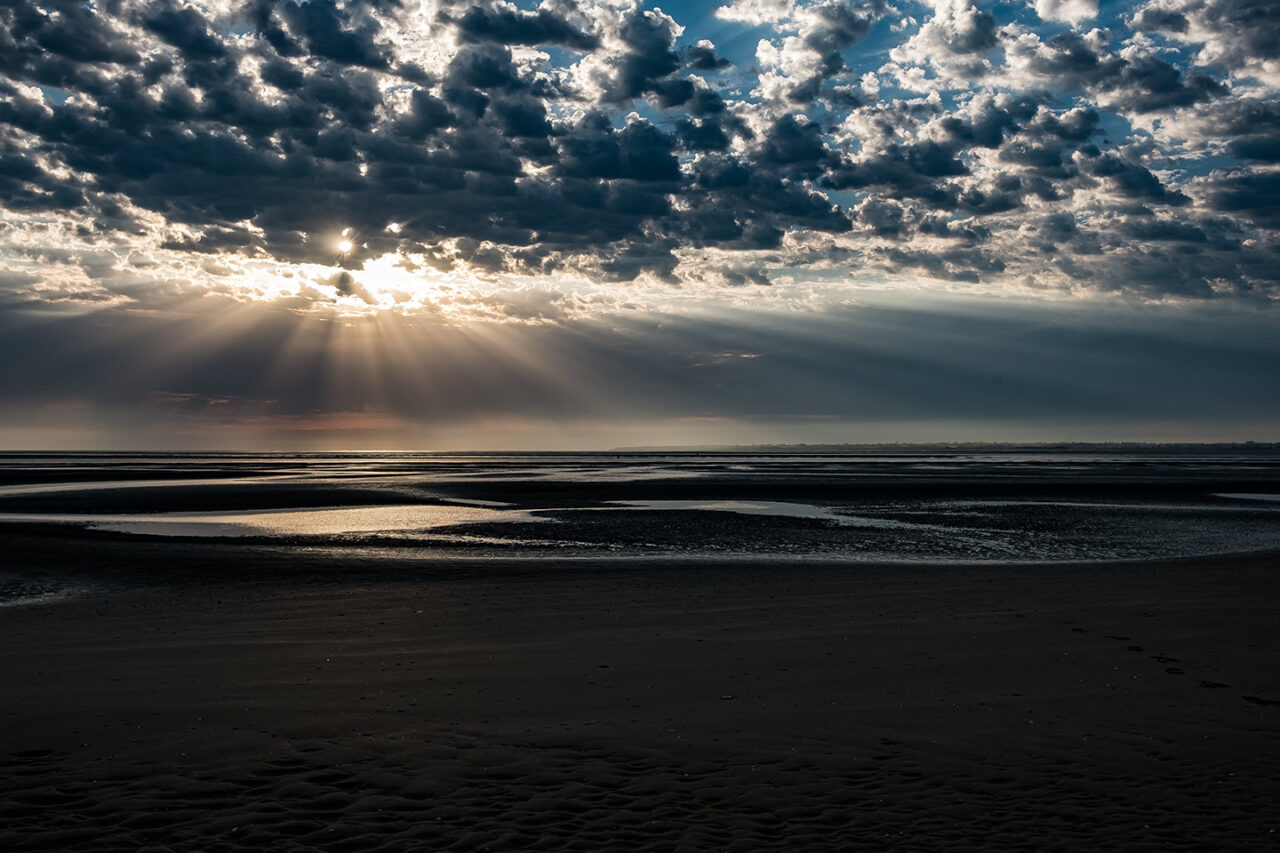 Sortir avant l’aube, avant la première lumière, sortir silencieux comme un chat – quand la nuit et le silence règnent encore et que toute l’humanité environnante reste endormie- constitue un moment privilégié, une expérience irremplaçable. Ces quelques instants comme en attente, ce temps où la lumière revient, lente et inexorable, ce temps où le jour renaît sublime mon rapport au monde. Ici, avec les mouettes et les pluviers que je dérange, je suis le seul vivant et sur la plage, la promenade ou la falaise, le spectacle qui va commencer nous est réservé . Les premières silhouettes n’apparaîtront, lentes et furtives, que deux ou trois heures plus tard. Ces quelques heures me sont précieuses, suspendues, étrangères au cours ordinaire du temps. Je savoure ces délices, je les fixe calmement.